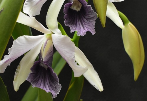 名为蓝灰,花色实际差异很大,大多偏紫,色彩一般,少数偏蓝灰,偏蓝灰也有人眼能区分的好与差,还有种蓝色少灰色多的呈现出偏灰的色泽,快接近水墨,有人叫铅色(有的上家声称铅色的不一定对),铅色的还有的偏黑,如巴西21年推出的C.purpurata fma. ardosia 'Black'*self。可惜的是铅色系的花型都一般。